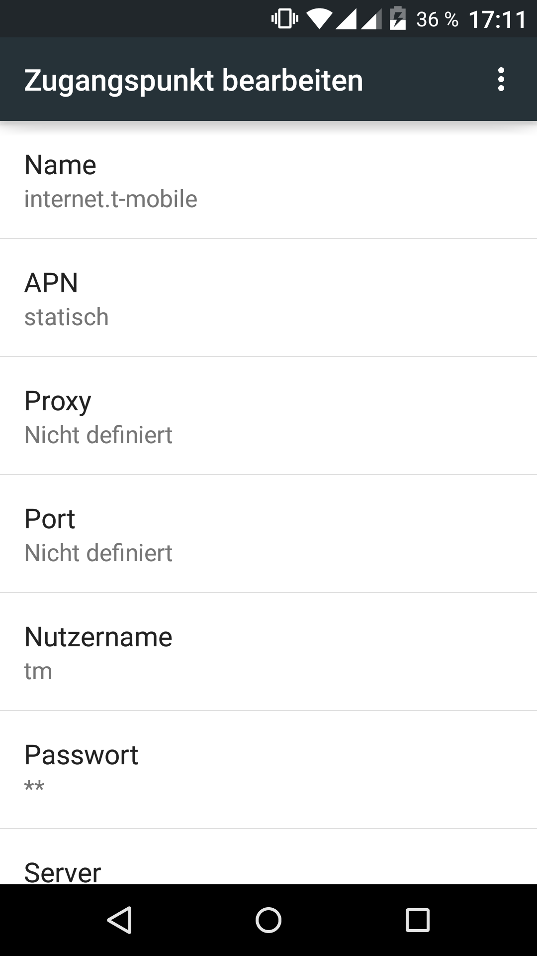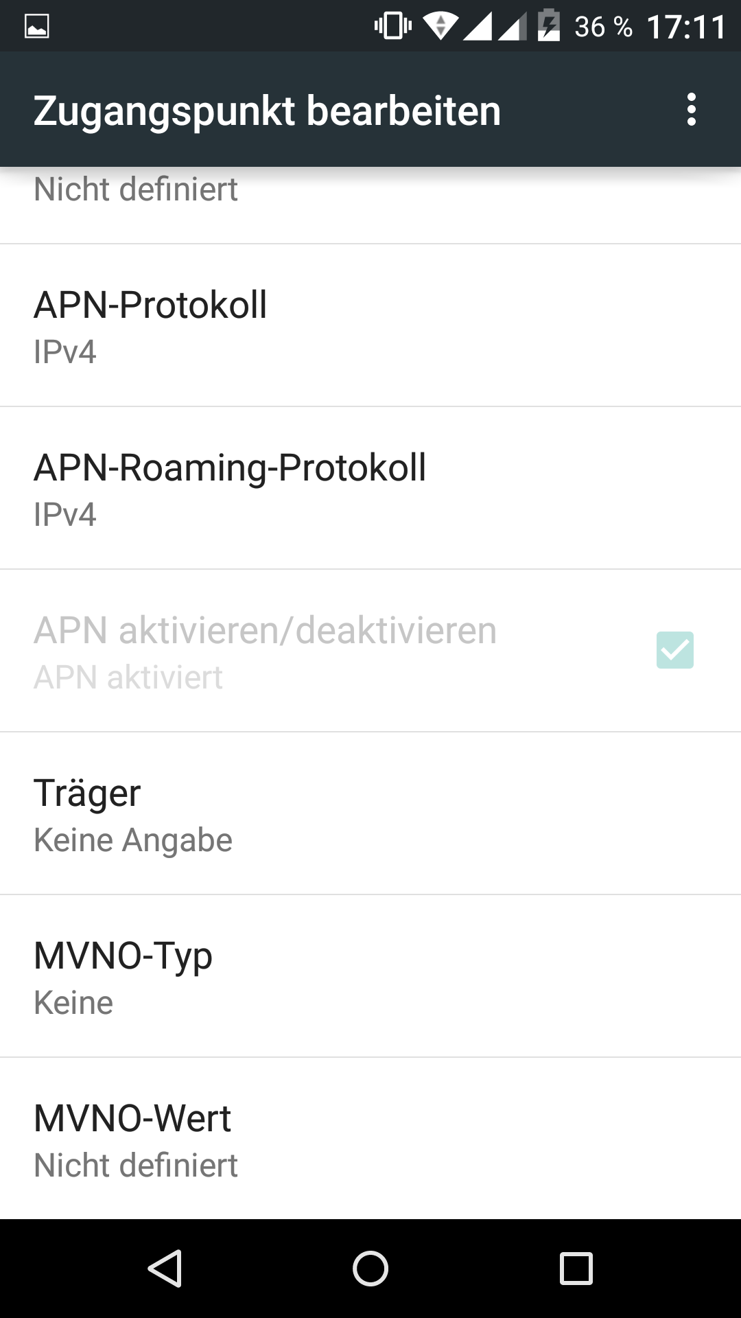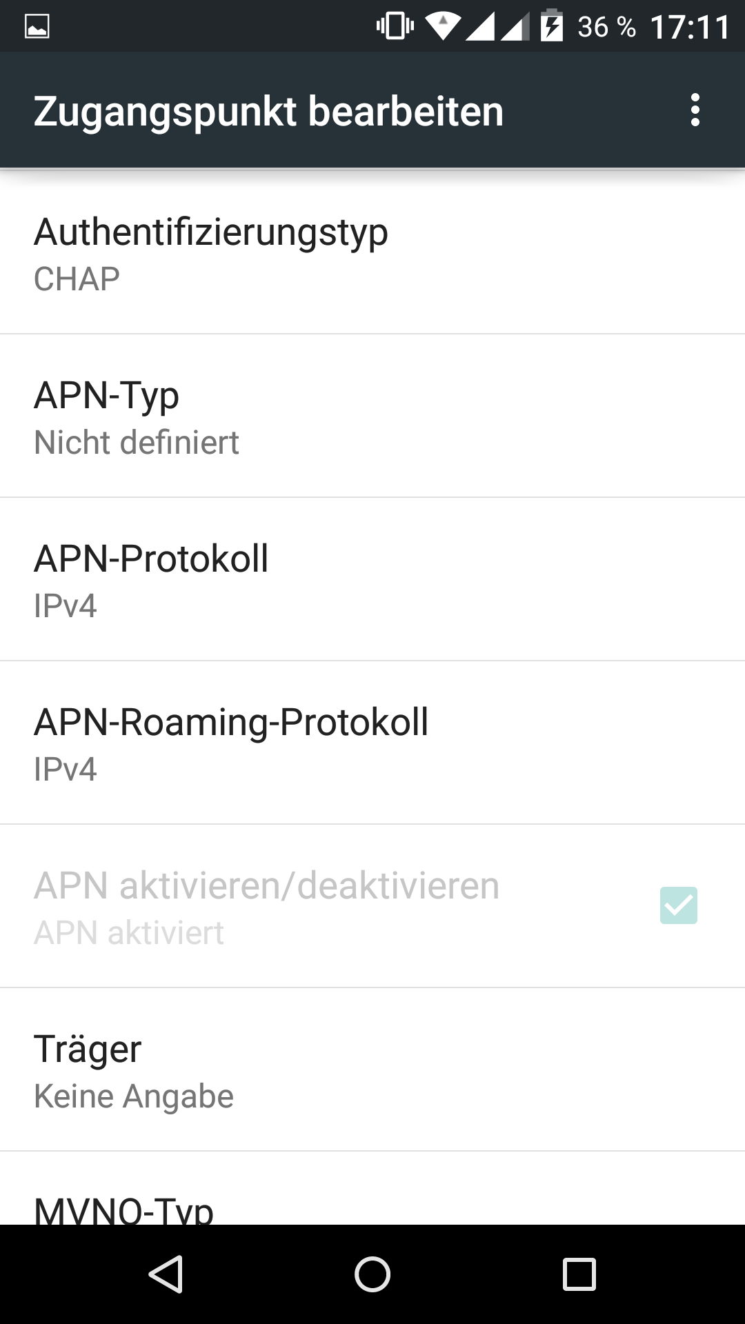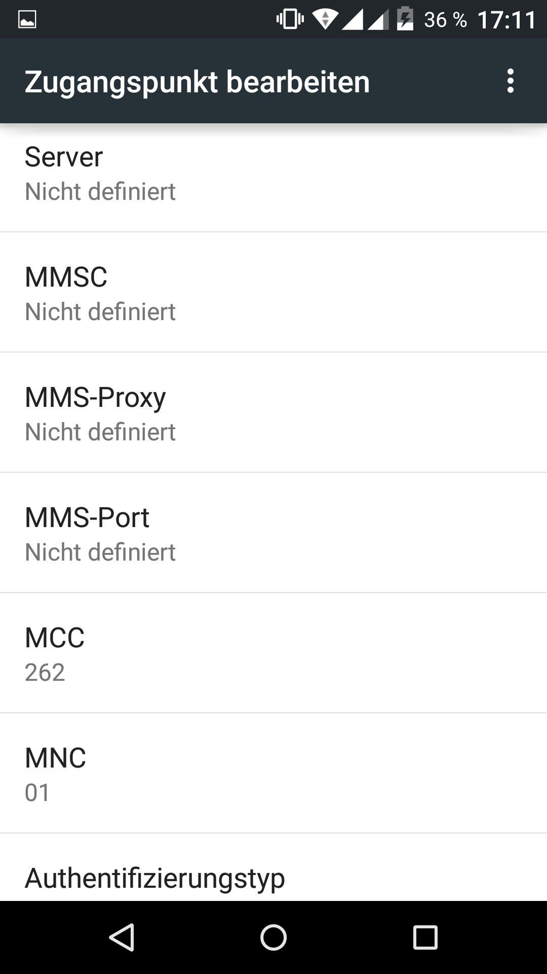 Die meisten der Parameter sind nicht befüllt - das ist normal. Probiere bitte als Authentifizierungstyp PAP aus und wähle als APN-Typ default. Das APN-Protokoll kannst du optional auch umstellen auf IPv4/IPv6 anstatt nur IPv4 zu wählen. Ansonsten sehen die Einstellungen gut aus.