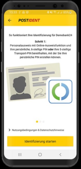 Damit eine Identifizierung per Online-Ausweisfunktion erfolgen kann, wird ein gültiges eID Ausweisdokument, eine stabile Internetverbindung und ein NFC-fähiges Endgerät oder Kartenlesegerät benötigt. NFC steht für "Near Field Communication", welches ein Funkstandard zur Datenübermittlung auf kurzer Distanz darstellt. Es wird empfohlen die Identifizierung über das Smartphone mit Hilfe der POSTIDENT App durchzuführen, um einen unkomplizierten Ablauf zu gewährleisten.