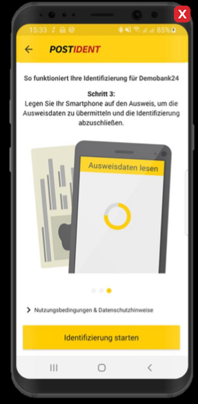 3. Legt das NFC-fähige Smartphone auf den NFC-fähigen Ausweis , um die Ausweisdaten zu übermitteln und die Identifikation abzuschließen.