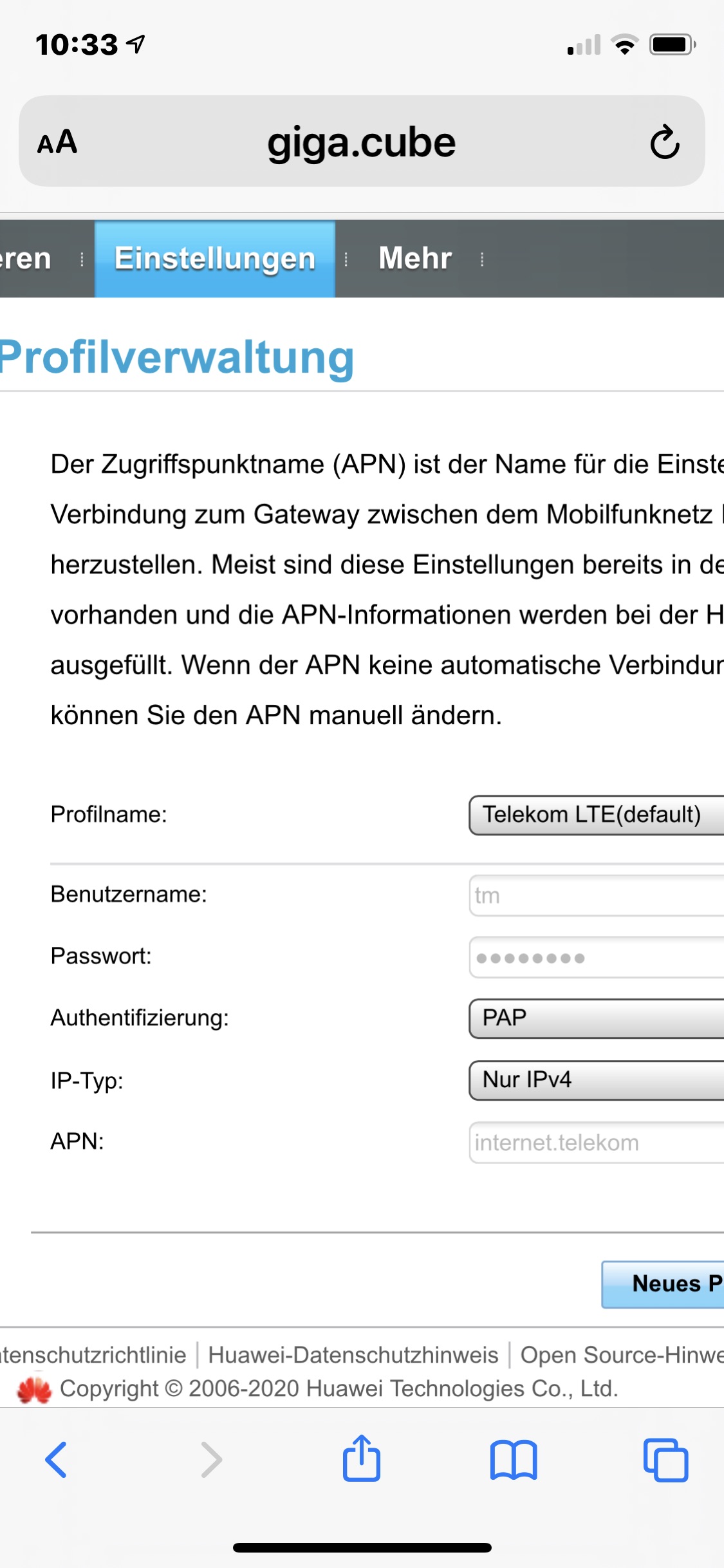 APN (auch Zugangspunkt genannt): statisch
