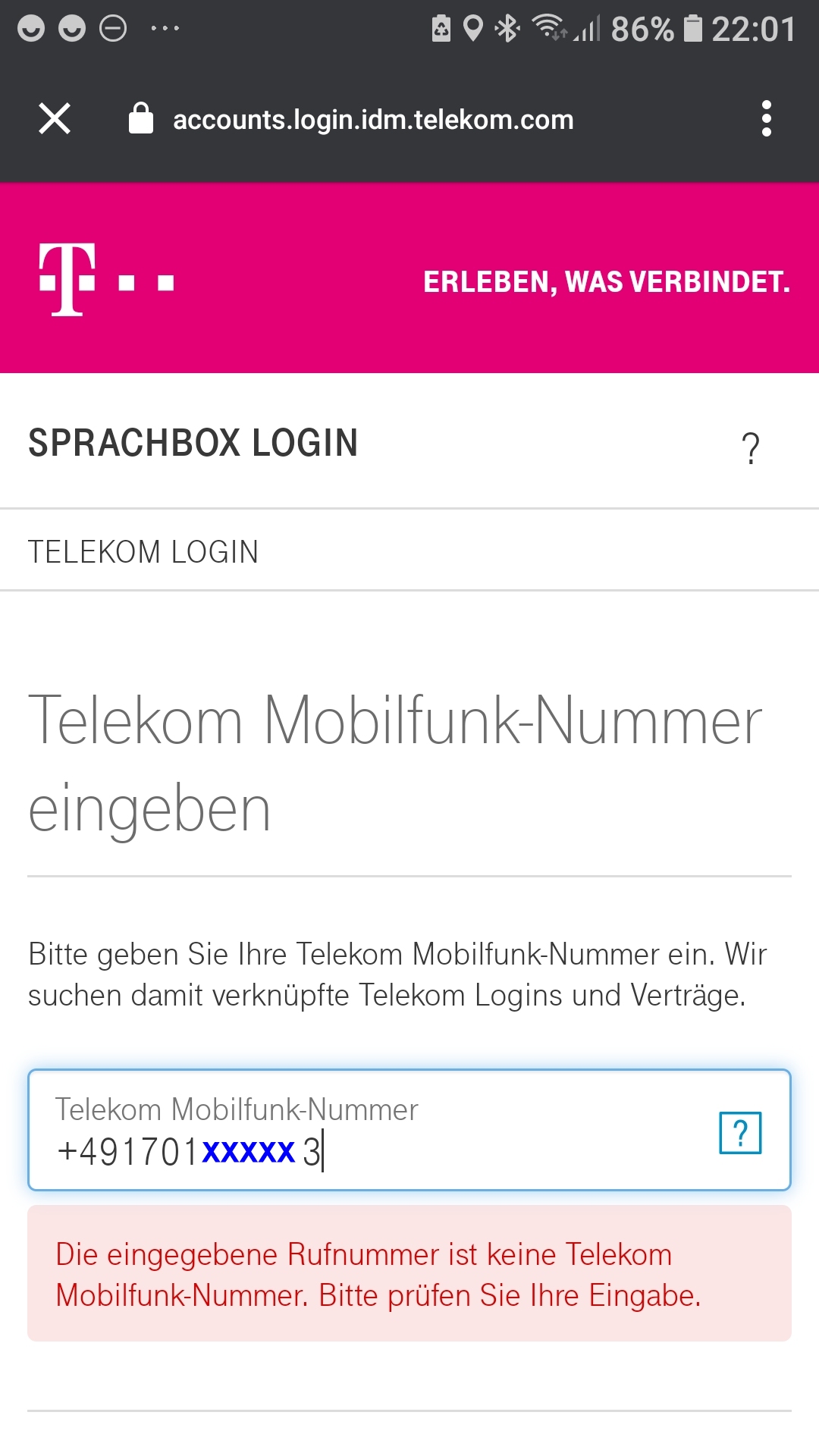 langsam verzweifele ich wirklich. Grade habe ich meine Mailbox zur Prüfung mal abgehört. Zwei neue Nachrichten! Keine SMS hierzu erhalten. Eine Nachricht von gestern, ein Mitarbeiter der Telekom hat eine Testansage aufgesprochen. Sehr schön, dachte ich. Dann kam der Hinweis, diese Testnachricht könnte ich dann ja über die Telekom-Voicemail abfragen. Ich weiß zwar nicht welche Informationen die Techniker haben, aber dass ein Congstar-Kunde nicht auf die T-Kom-Voicemail zugreifen kann, sollte eigentlich bekannt sein. Ich habe die App dennoch neu installiert und es trotzdem versucht (wie vorher auch schon). Aber bereits das Einloggen wurde mit >Die eingegebene Rufnummer ist keine Telekom Mobilfunk-Nummer. Bitte prüfen Sie die Eingabe.< abgelehnt. Ich bitte diese Information an den Kollegen der Telekom M. Ro*** weiter zu geben. Anruf 10.12. um 16.12Uhr.