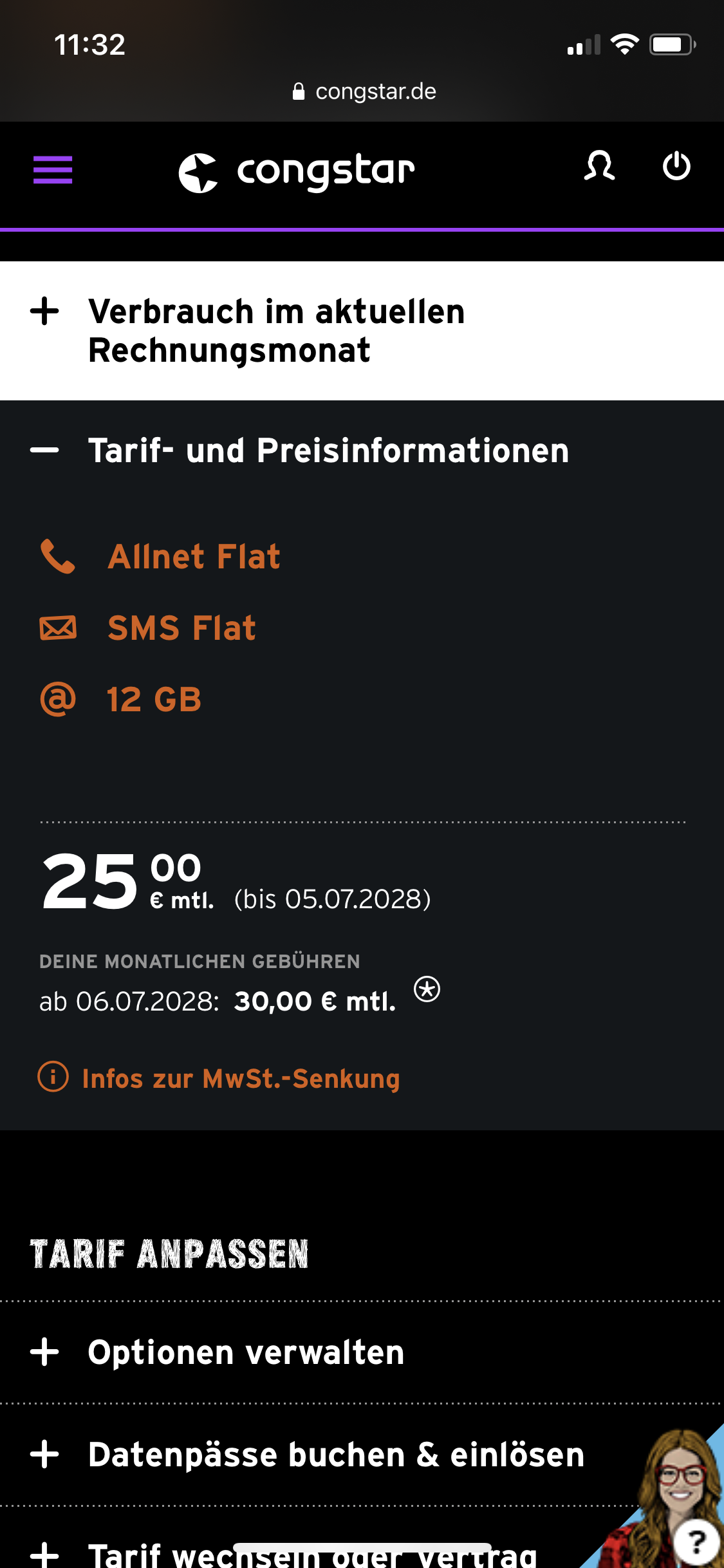 logge dich auf congstar.de ein und scrolle runter zum entsprechenden Tarif.