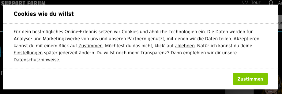 Cookiehinweis ist nicht in Ordnung