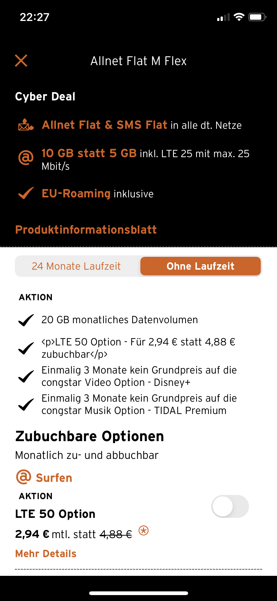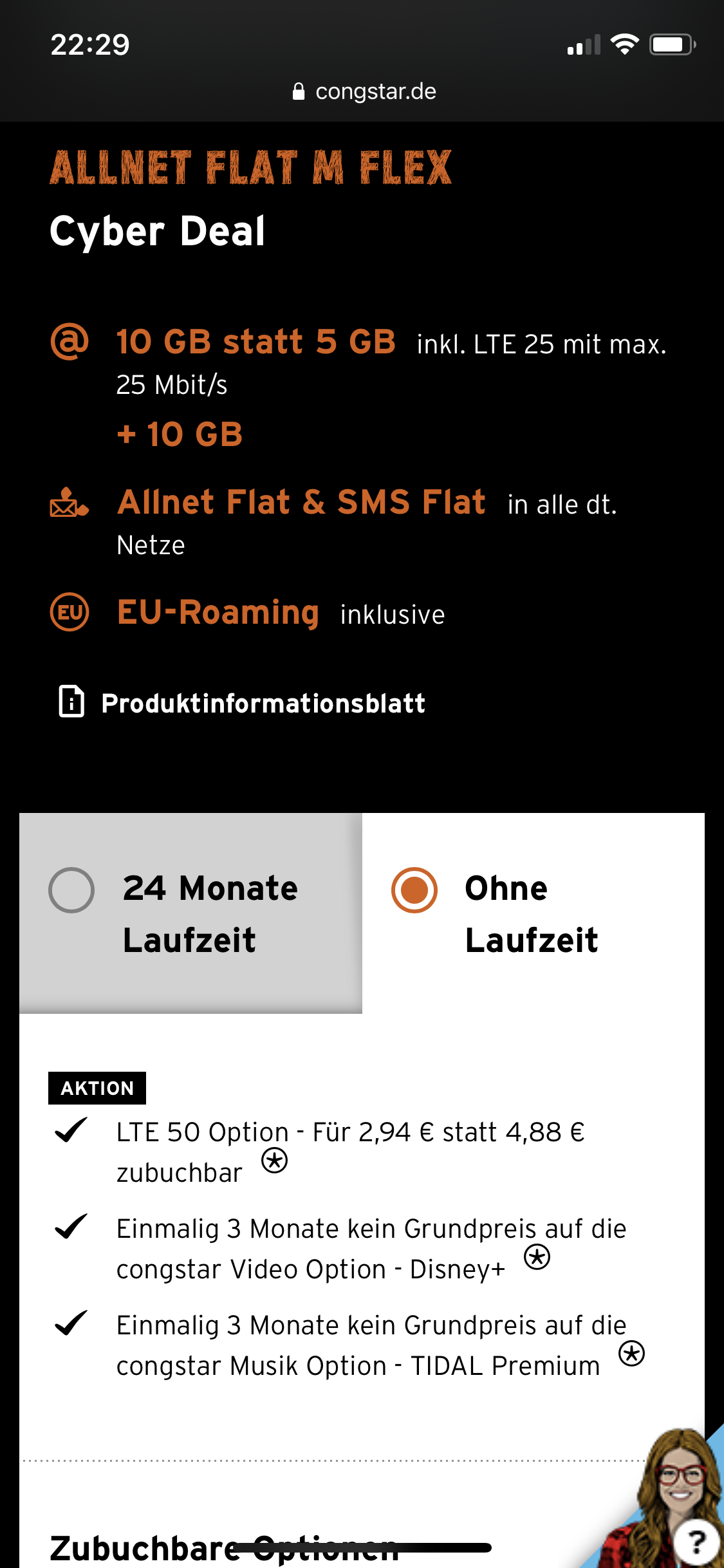 Ich kann in meinem Allnet Flat M Flex momentan keine Optionen buchen und auch keinen Tarifwechsel anstoßen.Ich bin jetzt im Allnet Flat M Flex Tarif mit 20GB. Cyberdeal wird nicht angezeigt.
