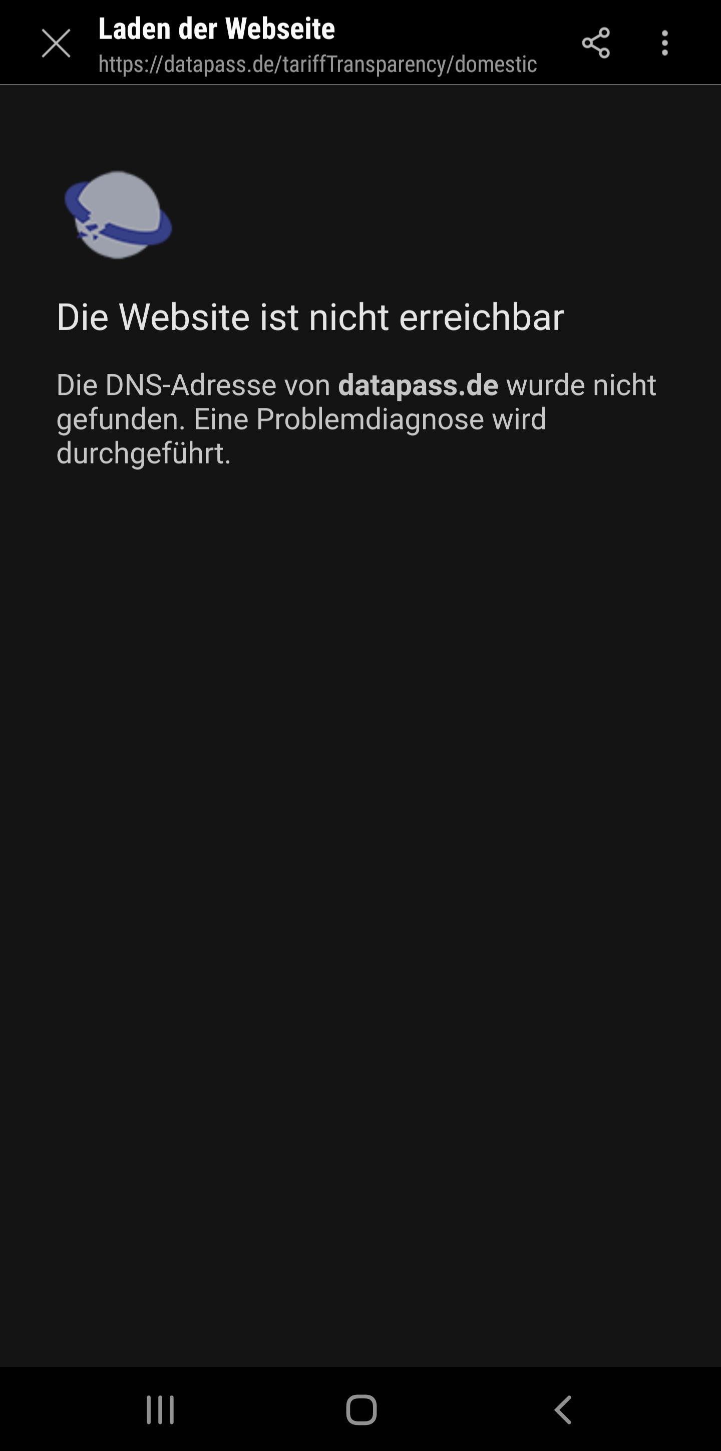 Die Seite von datapass kann nicht geöffnet werden (s. Foto 3).