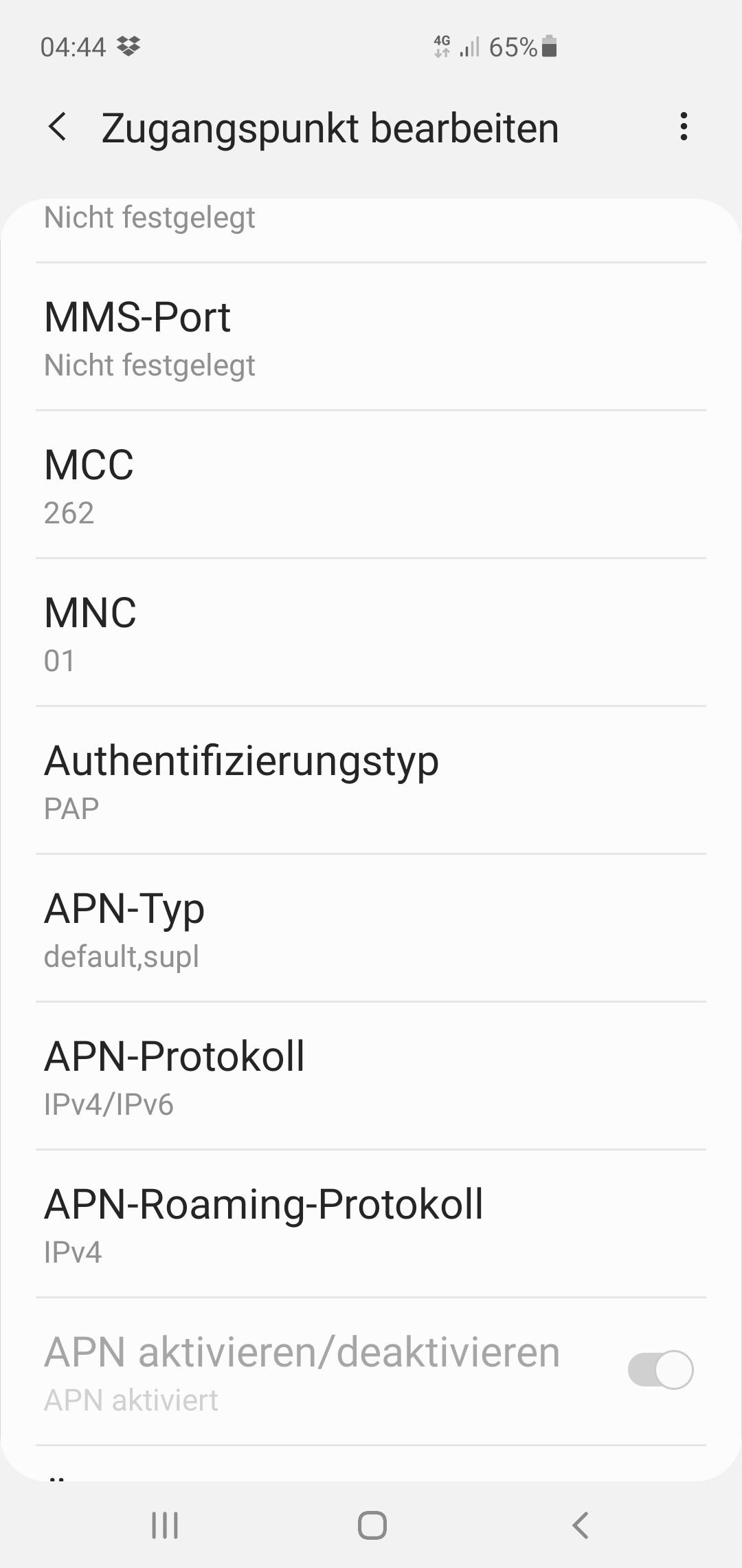 Die Zugangsdaten mit APN usw. habe ich lt. Anleitung eingegeben (s. Bild 2).
