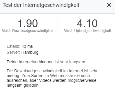 während ich zu Vertragsbeginn mit noch ca 12mbit im Download recht zufrieden war, sank dieser Wert in den letzten Monaten, sodass ich mittlerweile mit 0,2 bis 1,2mbit an guten Tagen unterwegs bin. Der Upload ist mit ca 16mbit ähnlich gut wie jeher.