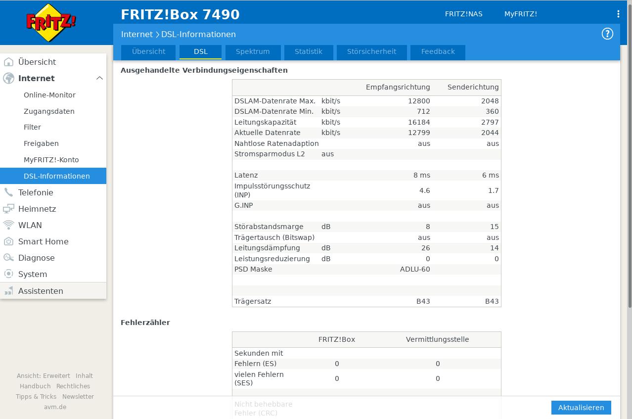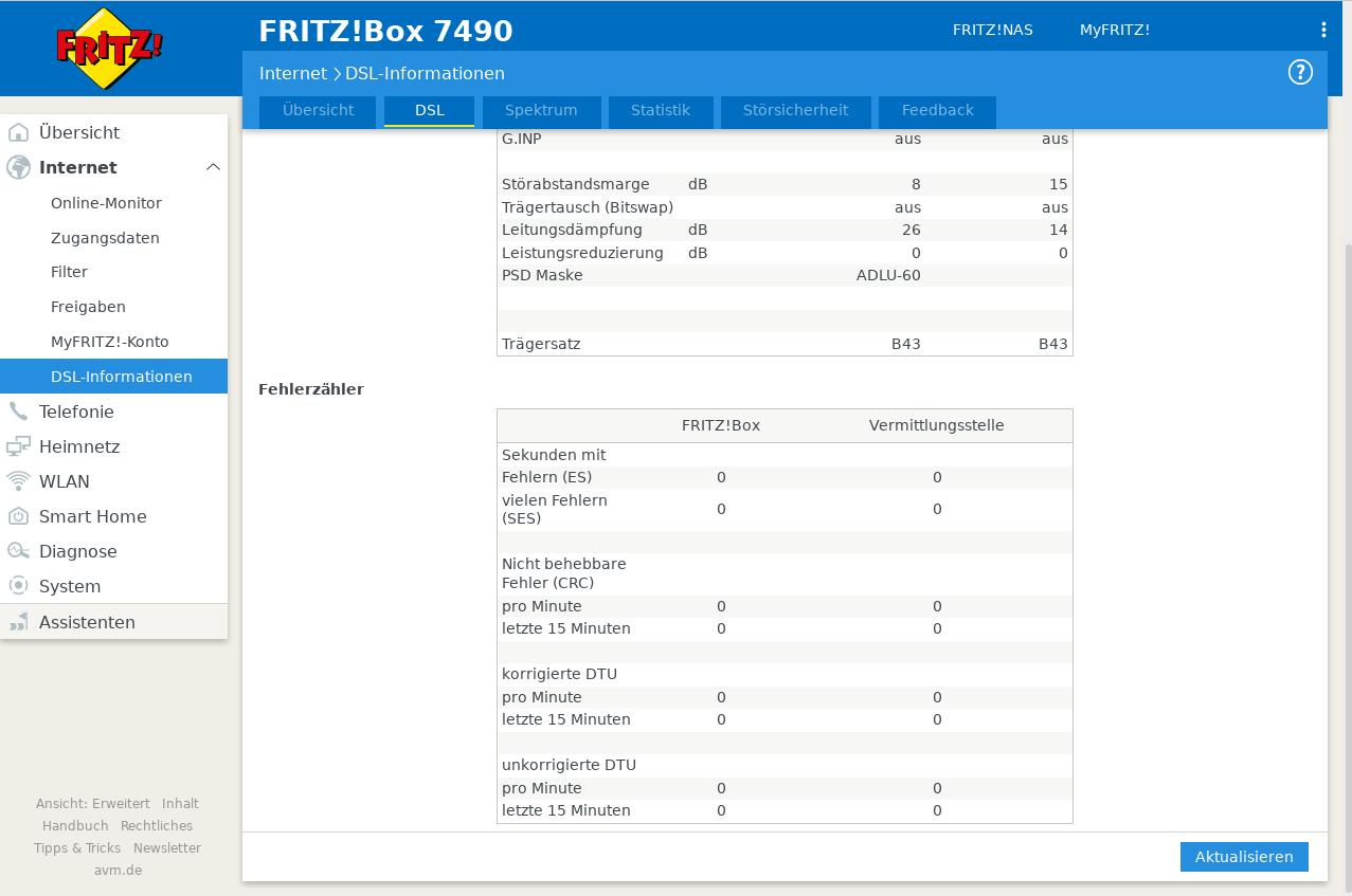 Kein DSL Signal ( ) Telefonie ( ) Bandbreite ( ) Abbrüche (X)
