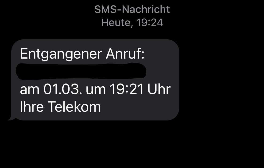 Aber ich bekomme weiterhin eine SMS über einen entgangenen Anruf, die genauso aussieht, wie die aus dem angehängten Screenshot.