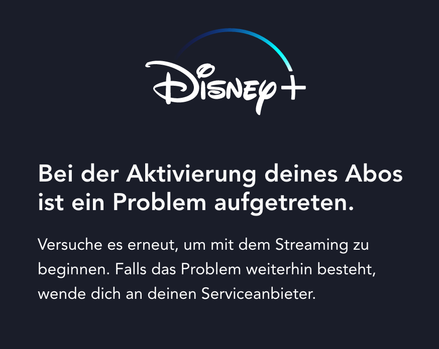 ich bin zu einem Tarif gewechselt, bei dem Disney+ inklusive ist. Allerdings kann ich mein Konto dort nicht aktivieren. "There was a problem activating your subscription".