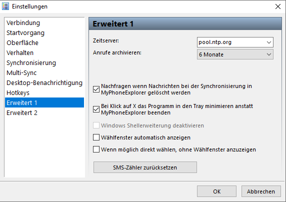 Wer heute noch SMS schreibt, kann hier einstellen ob nachgefragt werden soll, wenn bei Synchronisierung Nachrichten gelöscht werden sollen, in MyPhoneExplorer.
