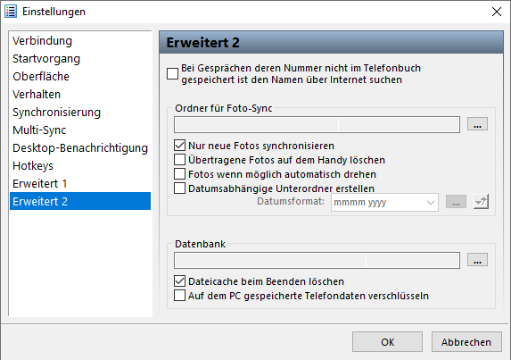 Einstellungen bzgl. Foto Sync und der Datenbank![]()