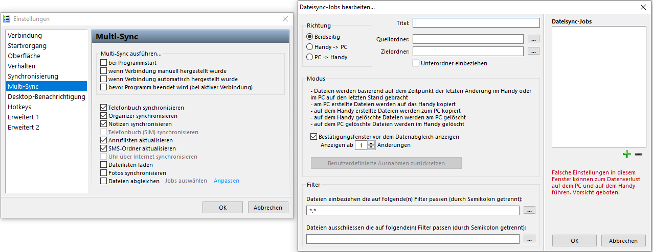 Ebenfalls auch umgedreht, wurden z.B. Kontakte und Notizen geändert, werden diese über Multi-Sync vom PC auf das Smartphone übertragen.