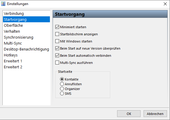 Hier kann eingestellt werden, was vom Smartphone auf den PC hin synchronisiert werden soll z.B. wenn unterwegs ein neuer Kontakt erstellt wurde, oder eine neue Notiz, dann können so die Neuerungen / Änderungen auf den PC übertragen werden.
