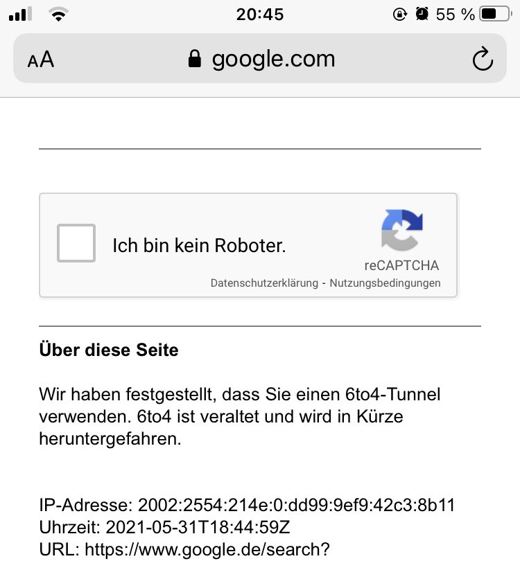 Google hat jetzt schon Hinweis Seiten geschaltet: