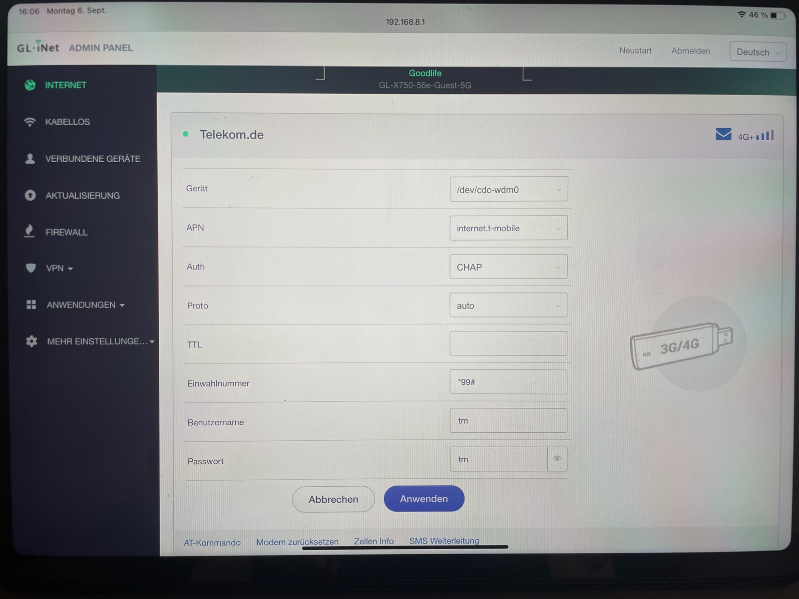 Kein Internet mit LTE-Router GL.iNet GL-X750 (Spitz)