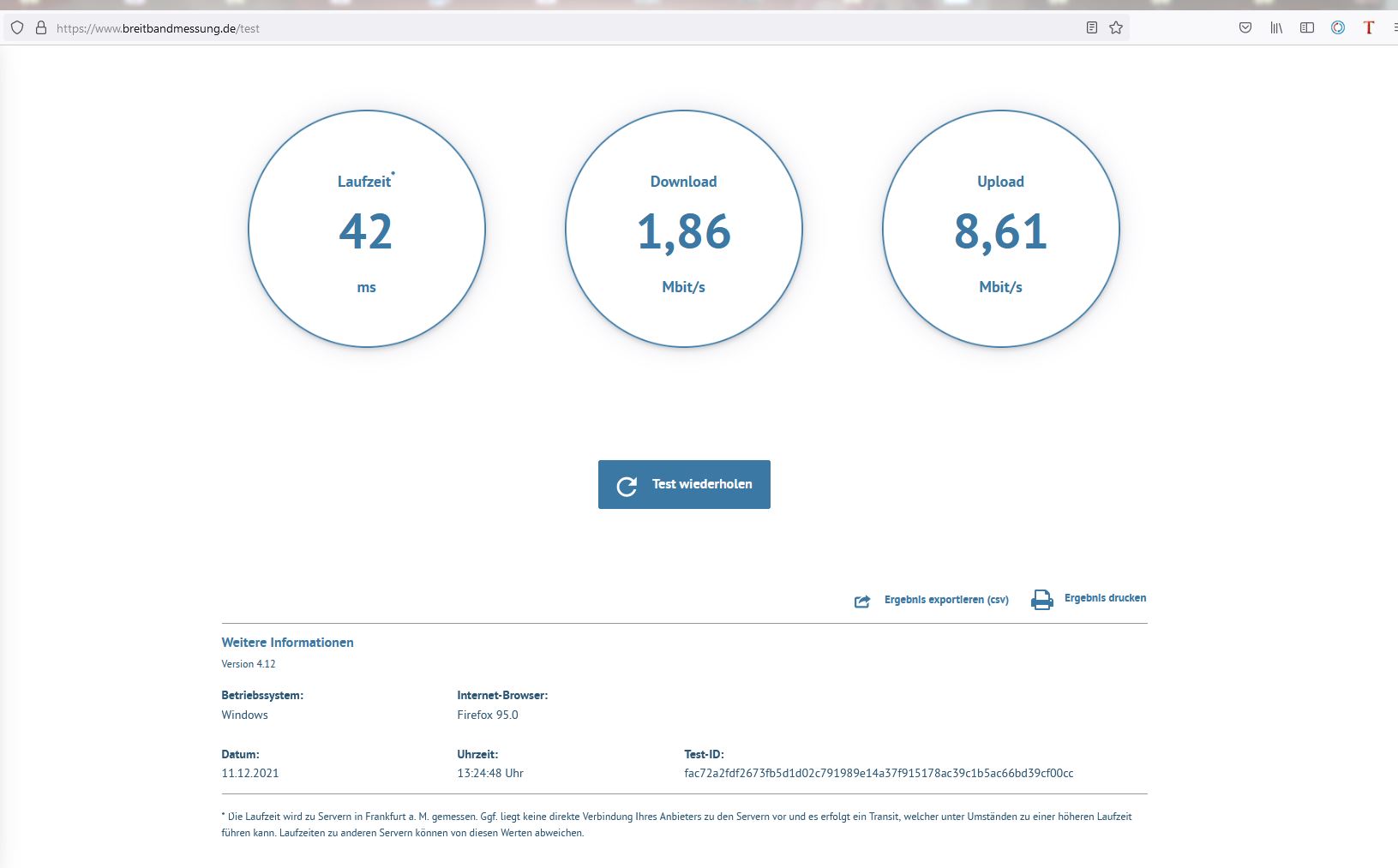 angegeben hat, gab es eine Störung bis gestern 10.12.?