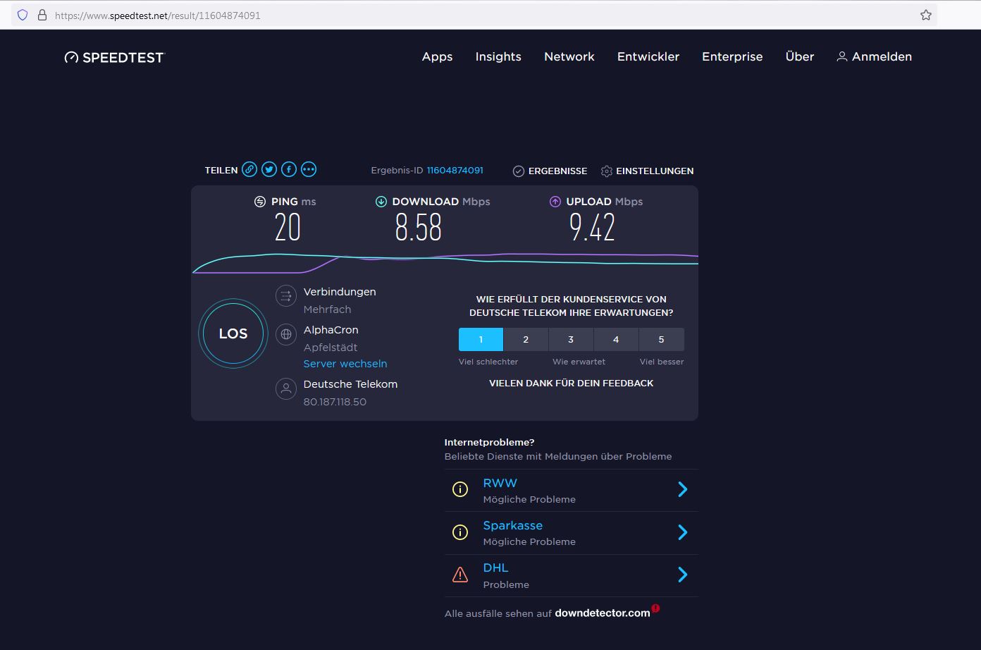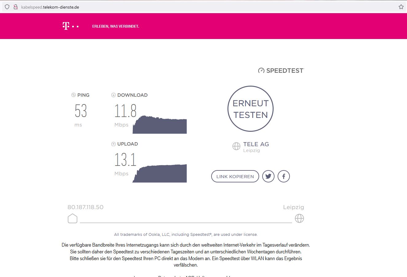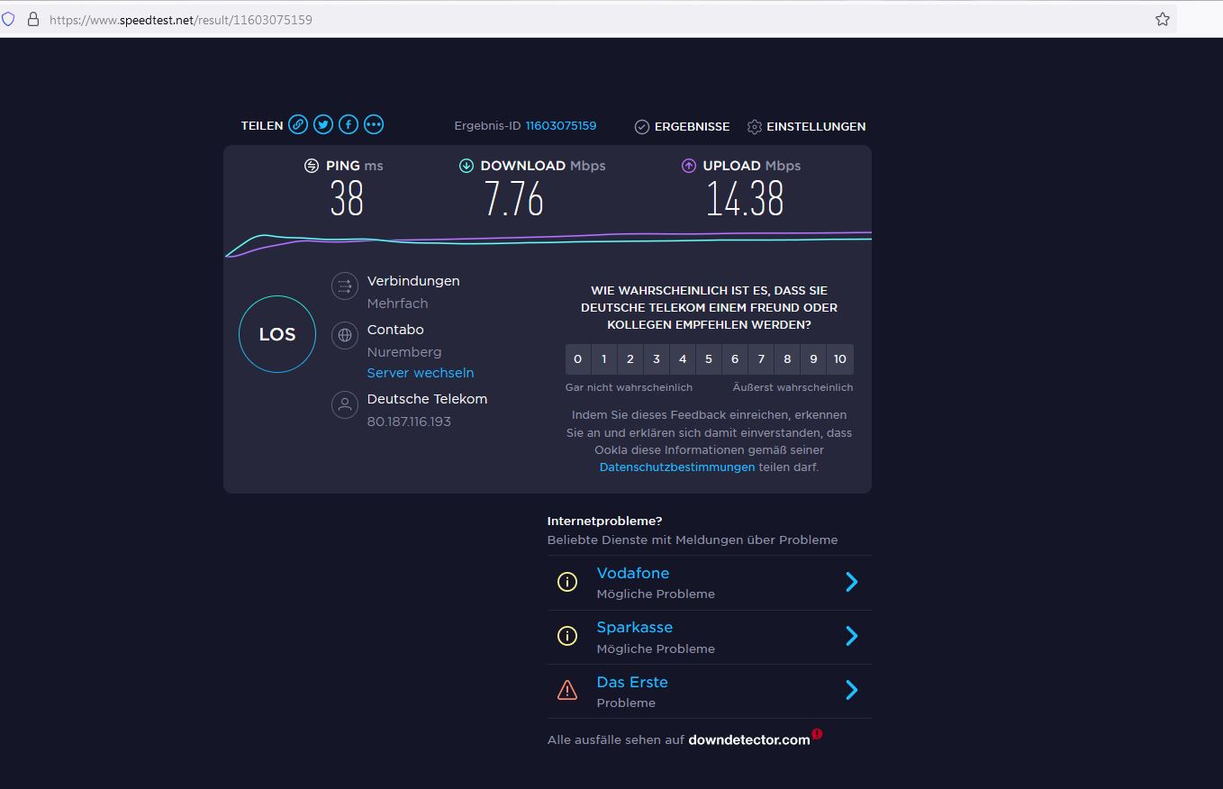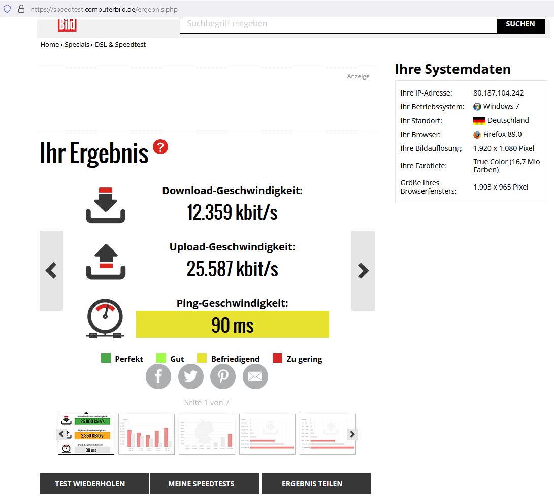 Aha Ich wusste gar nicht das die Datengeschwindigkeit vom Wochentag und der Uhrzeit abhängig ist und sonst nicht anliegt?