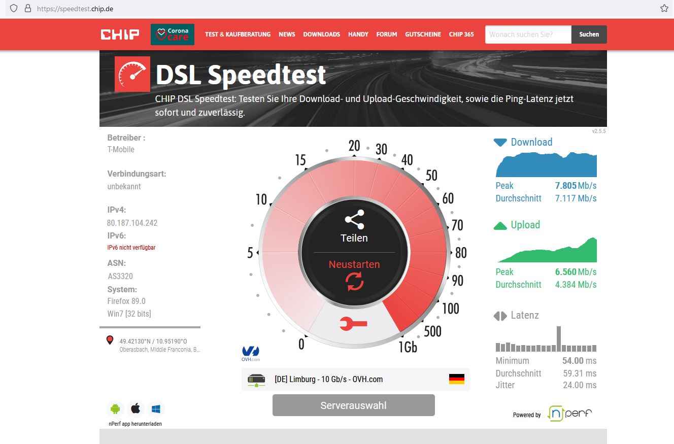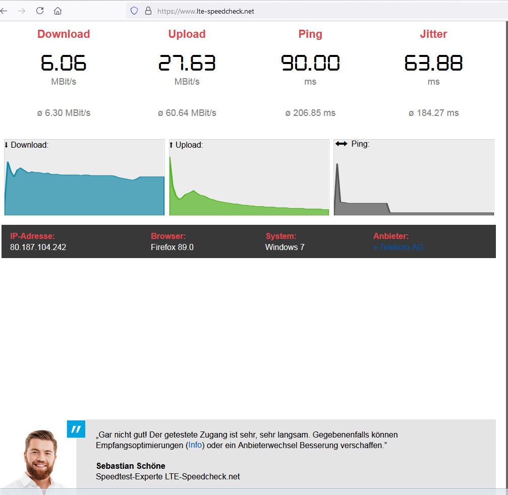 Andersherum hat die Handysim im Router die angegebene Geschwindigkeit von 40-50 Mbit!