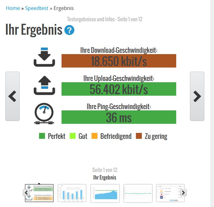 • beim letzten Test weiss ich gar nicht wie 56 Mbit im Upload gehen sollen wenn nur 25 Mbit Möglich sind!