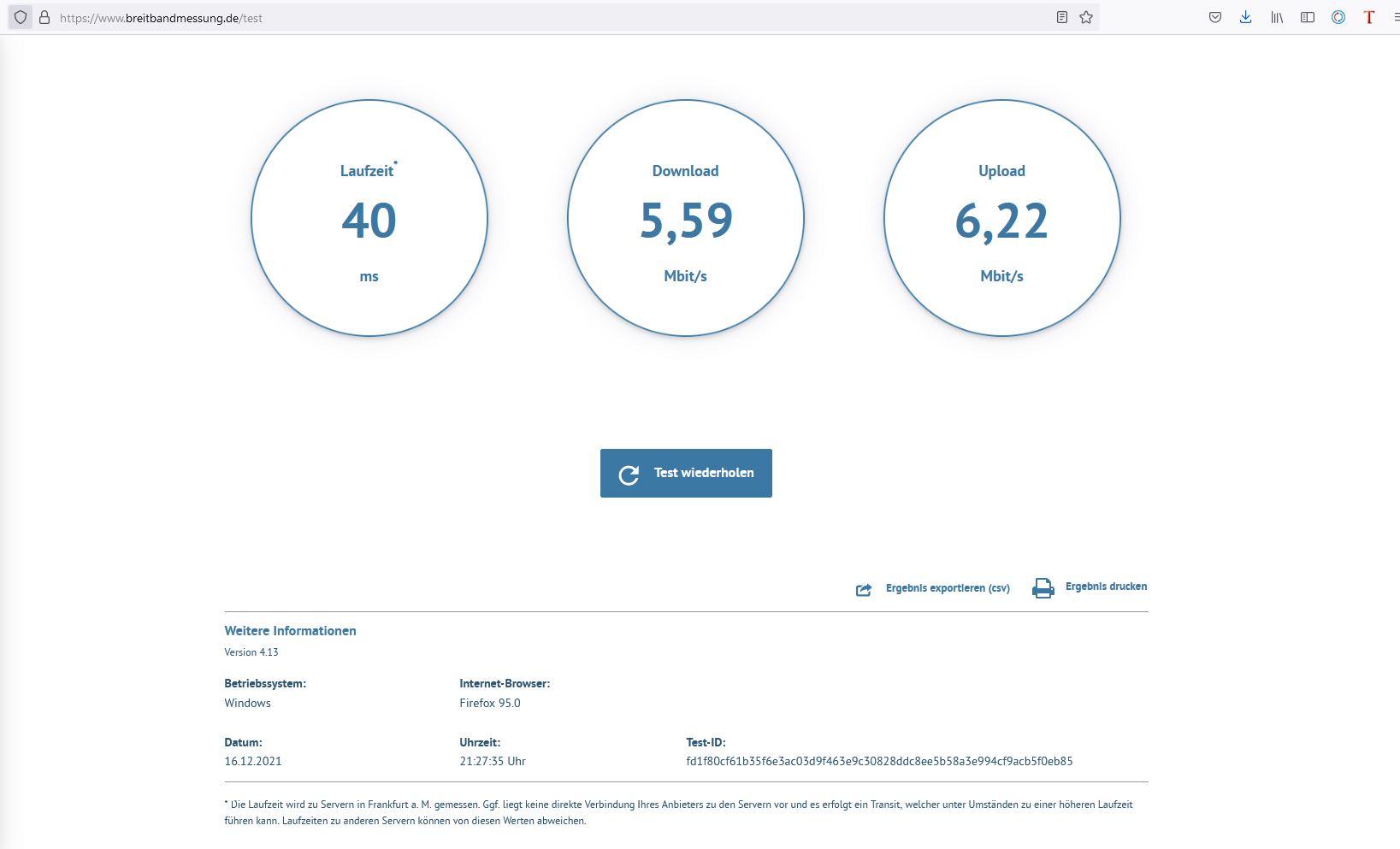 Ja der Screenshot ist ja nicht dort gemacht wo die Messung gemacht wurde, die soll ja am Standort des Routers gemacht werden.