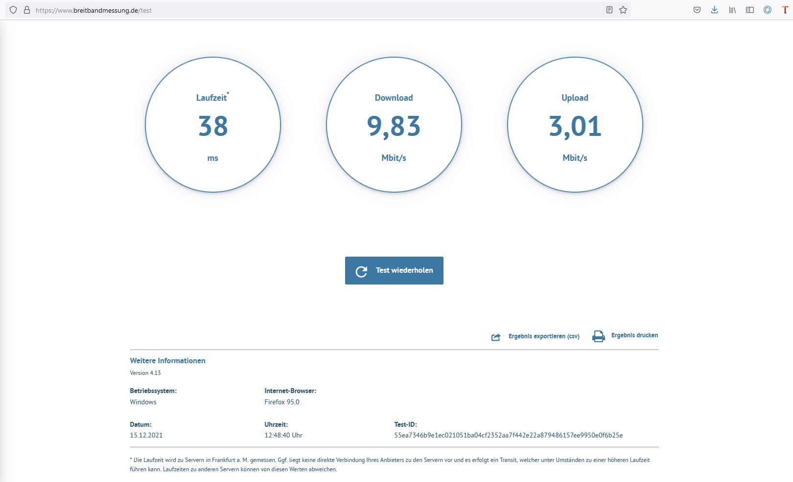 Ja der Screenshot ist ja nicht dort gemacht wo die Messung gemacht wurde, die soll ja am Standort des Routers gemacht werden.