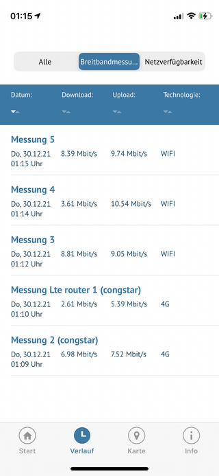 Versuche bitte jeweils (Handy und Router) 3 Tests am selben Tag Morgens, Mittags und Abends durchzuführen. Dann kann optimal geprüft werden. Sorry für die Umstände, aber leider sind die Daten nötig,