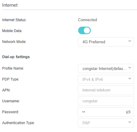 ich möchte meinen TPLink MR6400 zusammen mit der Hotspot-SIM-Karte als kurzfristigen Ersatz für meine Internetleitung im Home-Office nutzen. In meinem Handy funktioniert die SIM-Karte problemlos, in besagtem Modell bekomme ich aber einen Verbindungsfehler - die APN-Settings habe ich (soweit möglich) von meinem Smartphone kopiert, welches sich automatisch konfiguriert hatte. Der TP-Link hat schon einmal mit einer anderen SIM-Karte funktioniert, von daher würde ich einen Modem-Fehler zunächst einmal ausschließen.