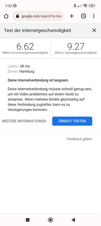 Wir erreichen aktuell mit unserem Homespot und der außen angebauten und ausgerichteten Richtantenne nur noch maximal 1 Mbit. Einstellungen wurden schon geprüft.
