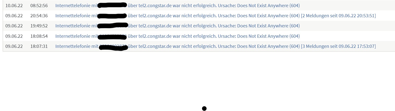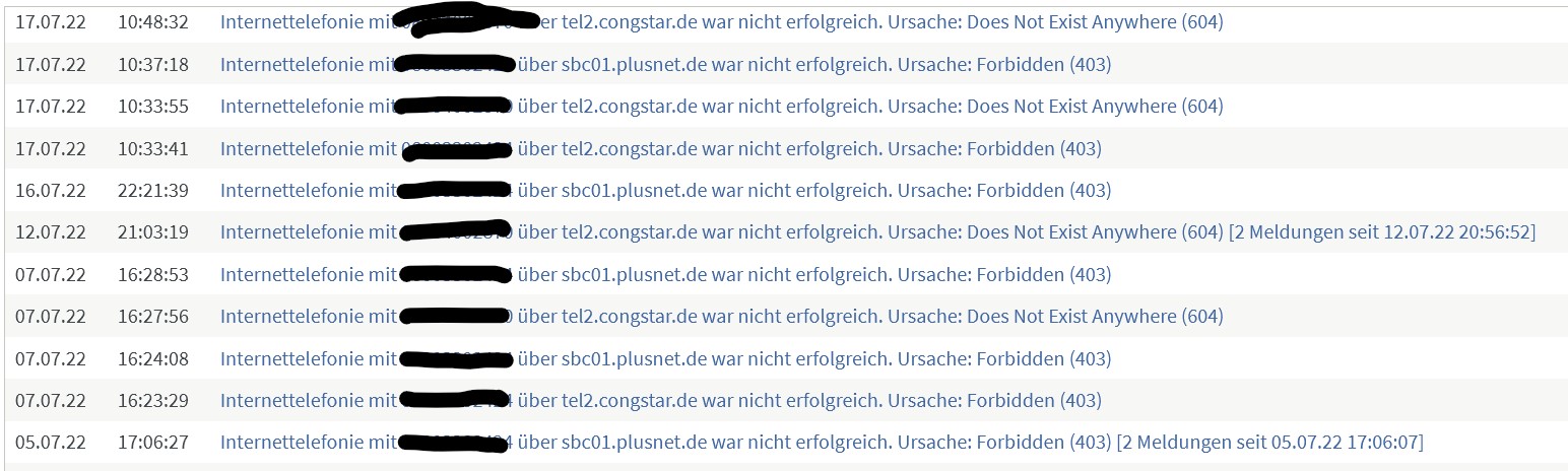 Vermutung: QSC als SIP-Provider der Congstar hat einen Konfigurationsfehler im Trunk oder einen DNS-Fehler.