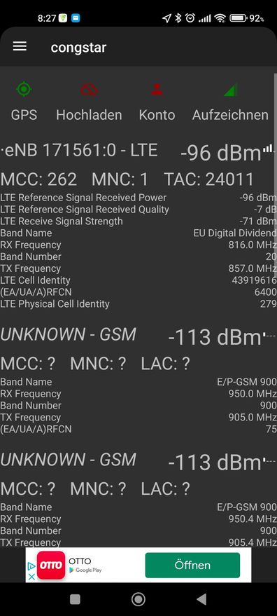 Es benötigt GPS-Zugriff. In der obersten Zeile findest Du die E NB ID und die poste hier mal bitte und zwar, wenn Du sehr guten Empfang hast und dann wieder, wenn der Empfang grottenschlecht ist.
