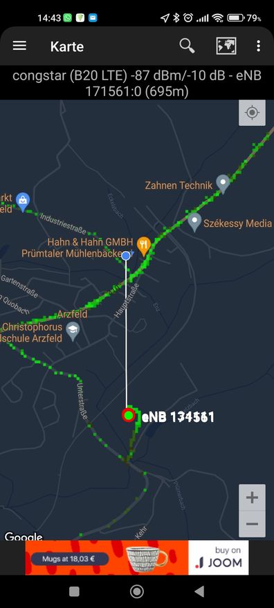 Zunächst einmal zeige ich Dir Deine Umgebung. Die PLZ ist von Arzfeld und wenn Du mitten in Arzfeld wohnst ist der Mast mit der eNB ID 171561 für Dich auserchoren worden. Siehe hier: