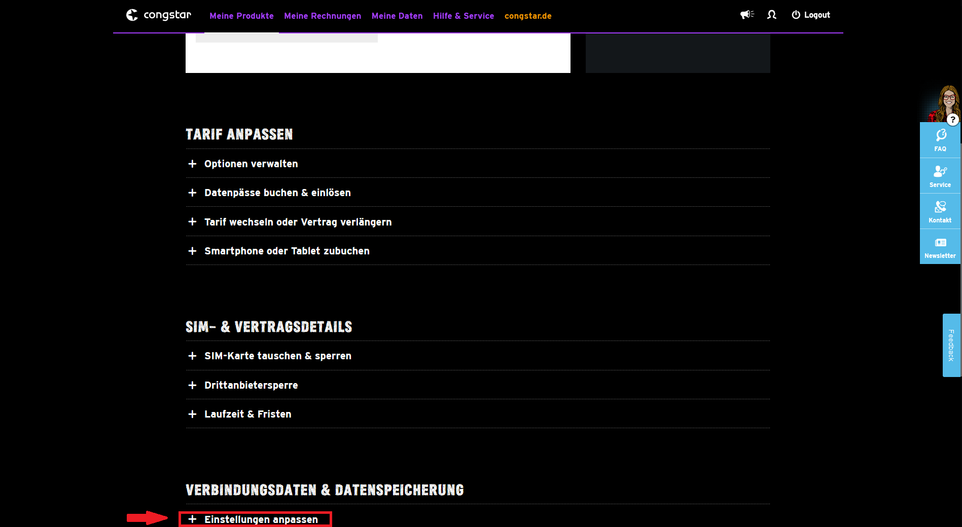 1. Loggt euch zunächst ins meincongstar Servicecenter ein.