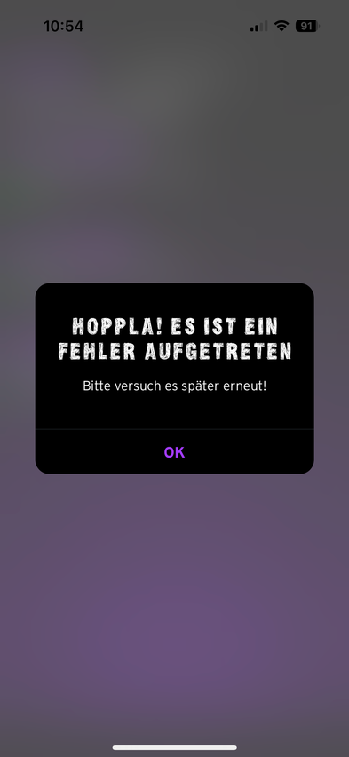 Ich bekomme jetzt nach dem ersten öffnen der App nur mit FaceID „Hoppla! Es ist ein Fehler aufgetreten“ angezeigt nach Auswählen des Vertrages angezeigt. Screenshot: