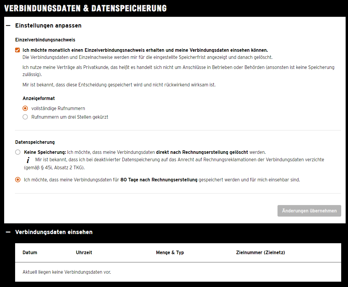 ich bekommen bei mir im Einzelverbindungsnachweis partout keine Verbindungsdaten angezeigt.