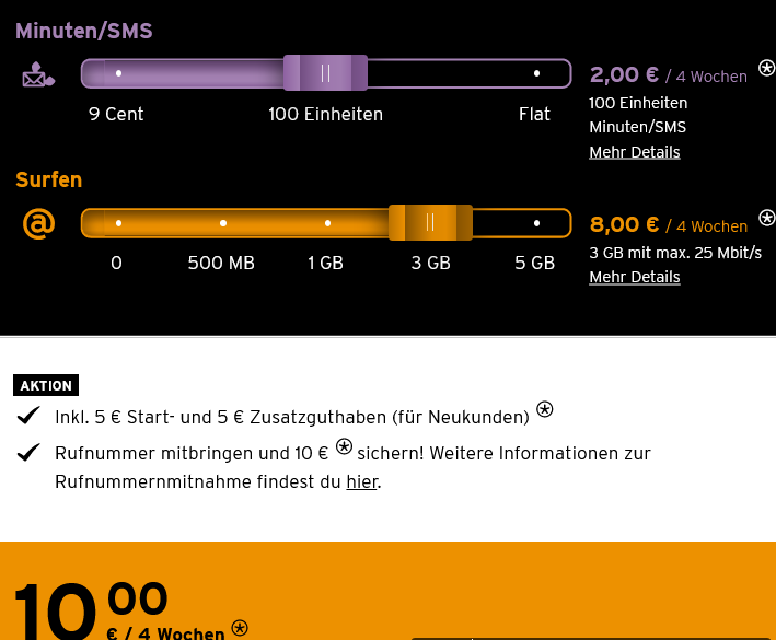 Wenn man kein Neukunde ist oder nach dem 31.12.22 vorübergehend in einen anderen Tarif wechselt, weil man im Winter beispielsweise weniger Daten braucht, bezahlt man wieder 10€ für 4 GB. 4GB nicht 6GB für 10€!