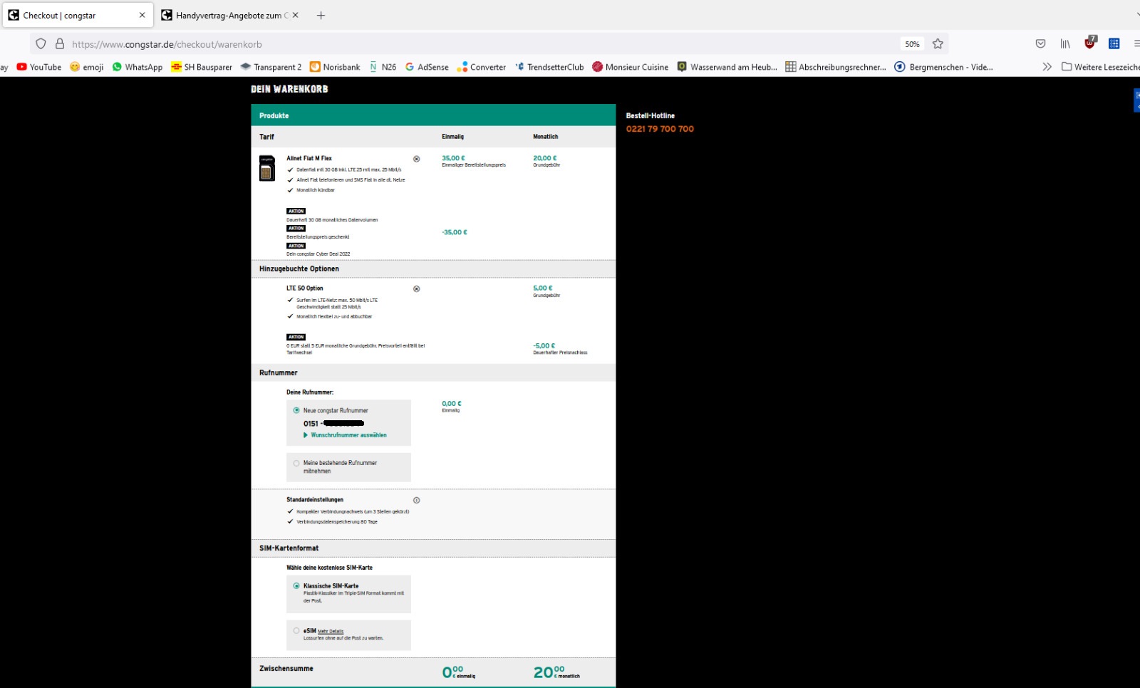 also zumindest die hinterlegte Rufnummer ist im aktuellen Cyber Deal mit 30 GB für 20,00 €.