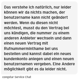 manchmal geht es dann doch ganz schnell: Ab sofort können wir auf allen Servicekanälen euren Benutzernamen für das meincongstar Kundencenter und congstar App für euch ändern.