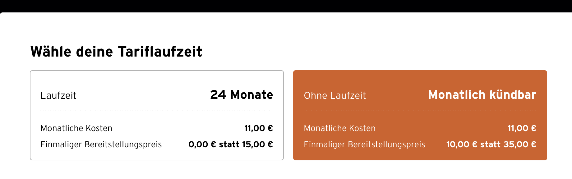 Leider lässt sich dies nicht buchen, bzw. für den Allnet Flat M mit GB+ beläuft sich die monatliche Summe immer auf 22.- und nicht auf 11.-.
