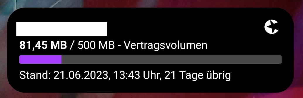 Das zeigt dir deinen Daten-Verbrauch an ohne, dass du die App öffnen musst.