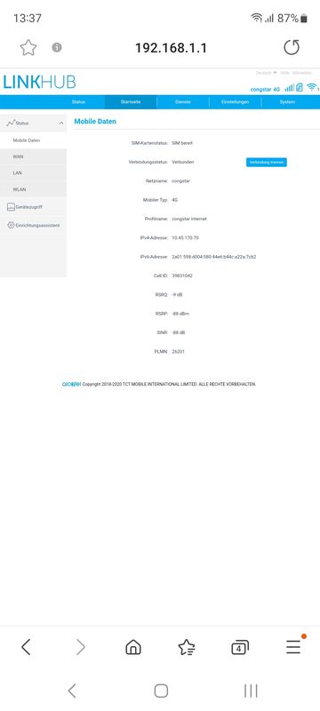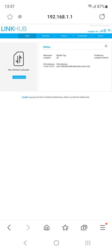 Router Simkarte auch in ein anderes Gerät eingelegt, auch da kein Internet. Router mit LAN Kabel am PC angeschlossen, auch da kein Internet. Neue Simkarte bekommen, auch da kein Internet.