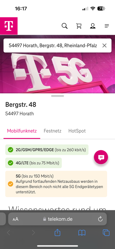 die mobilen Daten an meiner Arbeitsstätte (PLZ 54497) sind seit mehreren Wochen extrem langsam.