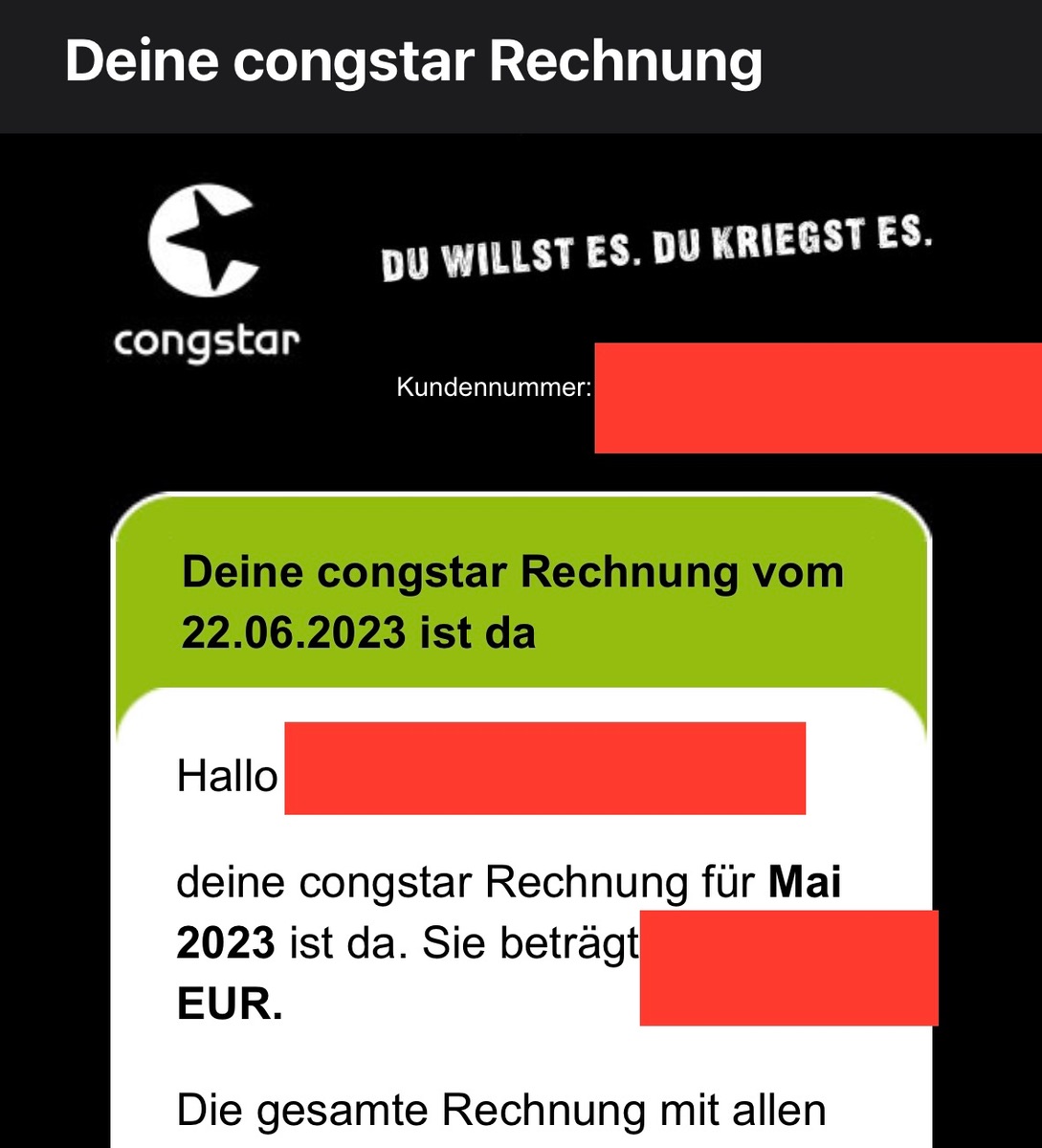 Heute wieder eine Benachrichtigung zur Rechnung erhalten und da ist mir aufgefallen, dass die E-Mail über 80 KB groß ist, dabei ist das was wichtig ist, nicht einmal 1000 Byte Text. Einiges geht natürlich auch dafür drauf, dass noch viel Eigenwerbung dabei ist.