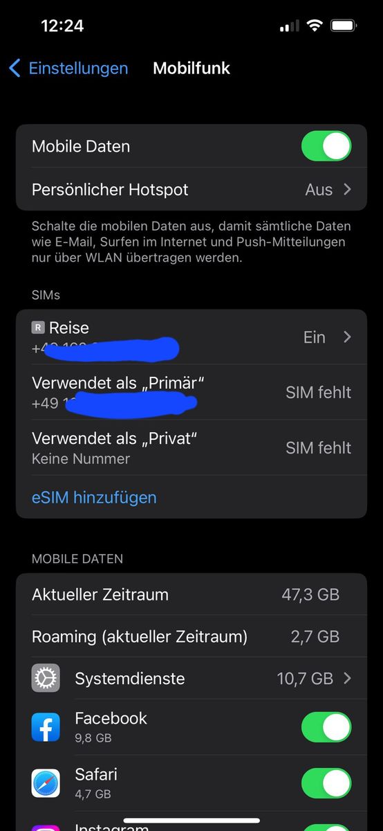 In der SIM Verwaltung steht jetzt SIM fehlt.