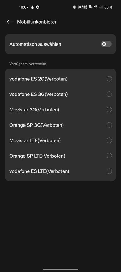 Ich habe die manuelle Netzfunktion aktiviert aber bei mir steht bei jedem Anbieter dahinter verboten