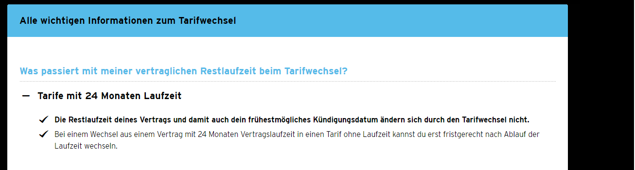 Ich befinde mich in einem 24M Laufzeit Vertrag. Laut der Congstar Webseite wie im Screenshot zu sehen. Kann man ja jederzeit in einen anderen Tarif wechseln.
