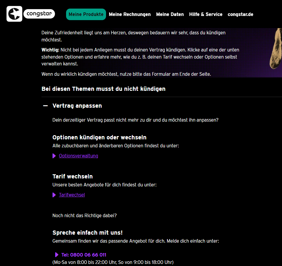 Es bleibt aber das Problem, was Congstar lauf Vertrag darf, nicht darf, muss oder kann - ob du einen Anspruch auf etwas hast oder nicht.