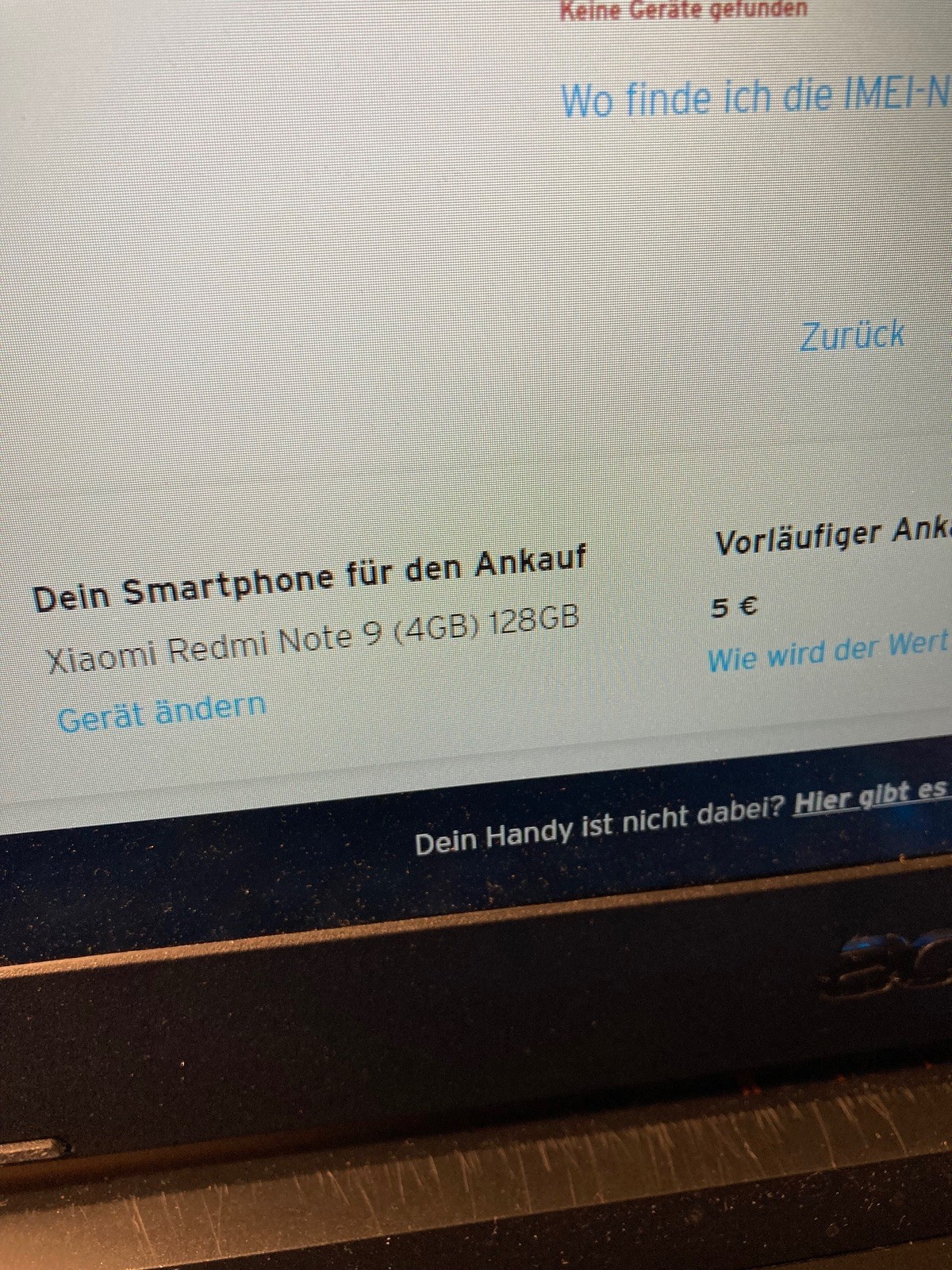 ich habe am Black Friday Weekend einen neuen 24 monatigen Vertrag bestellt und dazu das Google Pixel 8 mit 256 GB bestellt. Dabei wurde mit einem Ankaufbonus in Höhe von 150 € geworben. Im nächsten Schritt wollte ich mein Redmi Note 9 128 GB über den Handyankauf von Congstar verkaufen. Das Gerät konnte ich eingeben/finden und bin bis zur Eingabe der IMEI gekommen. An dieser Stelle komme ich aber nicht weiter, da unter der IMEI kein Gerät gefunden wird