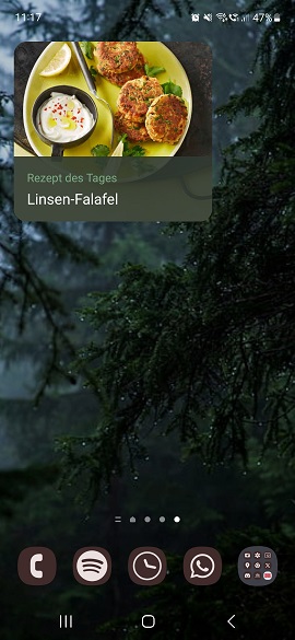 Natüüürlich gibt's für die Chefkoch-App auch ein Widget, das ist in der Größe 3x2 verfügbar (Android) und zeigt das Rezept des Tages an und leitet euch direkt zu diesem Gericht weiter, wenn ihr das Widget anklickt. Ihr kommt von dort aus auch wieder zur Startseite.