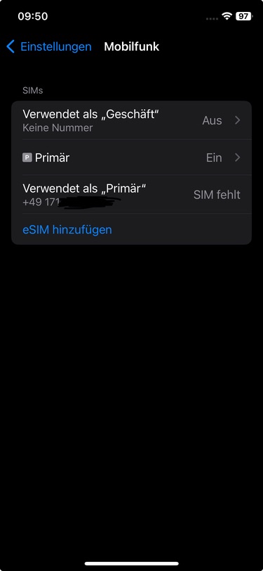Gerätewechsel (iPhone 11 pro auf iPhone 15). Umzug bequem über iOS gemacht. eSIM auf neuem iPhone beantragt und auf altem iPhone parallel gelöscht. Seitdem kann ich weder auf neuem noch auf altem iPhone eine eSIM einrichten. Mehrfache Neuanforderung von eSIM Profilen führte zu keinem Erfolg. Nun bekomme ich auf meinem alten iPhone, auf dem die eSIM Jahre problemlos funktionierte die Meldung eSIM ungültig. Nun stehe ich unereichbar am WE dar. Super. Was kann ich tun? Ich werde mich sicher nicht an den Apple Support wenden, da die nur zurück auf den Mobilfunkanbieter verweisen. Bitte um Hilfe - zügig! ![]()